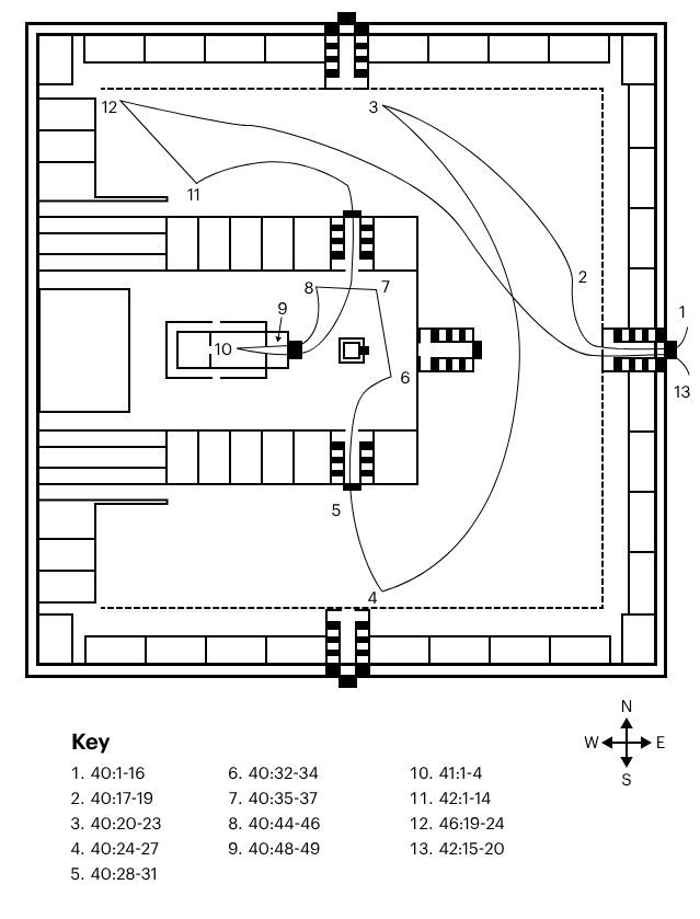 Tour of Ezekiel starts at the eastern gateway. And follows the diagram below: